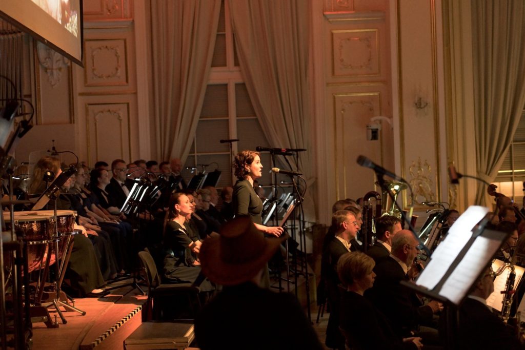 Začali sme však históriou: klasikou strieborného plátna, hudbou z filmu Odviate vetrom (Max Steiner). Tým, že za orchestrom bolo plátno, na ktorom sa počas hrania jednotlivých ukážok premietali statické obrázky z filmov, atmosféra bola ešte výraznejšia, hudbu to zjavne posilnilo. Už pri prvej ukážke bolo zrejmé, že dirigent Rastislav Štúr tentoraz nastavil s orchestrom podstatne vyššiu dynamickú hladinu. V sále, ktorá má výbornú akustiku, znel preto orchester, ktorý hral s plným nasadením, vynikajúco. Nechýbal mu drive, v téme vyjadrujúcej ľúbostný vzťah dvoch hrdinov, ktorý je však poznačený občianskou vojnou Severu proti Juhu, sa prekrásne, plnohodnotne vynímali sláčikové nástroje, sugestívnym, lyrickým výrazom, kontrovali im plechové. Téma zaznela aj v husliach sólo (Jarolím Emmanuel Ružička) mimoriadne precítene. Objavili sa v nej aj moderné prostriedky, zvlášť čo sa sonoriky týka (okrem úsekov, kde znela téma), táto partitúra na tú dobu prináša veľký progres. Koncom skladby sa ozval aj zbor, ktorý len citovo umocnil emócie zobrazené v tejto kompozícii.