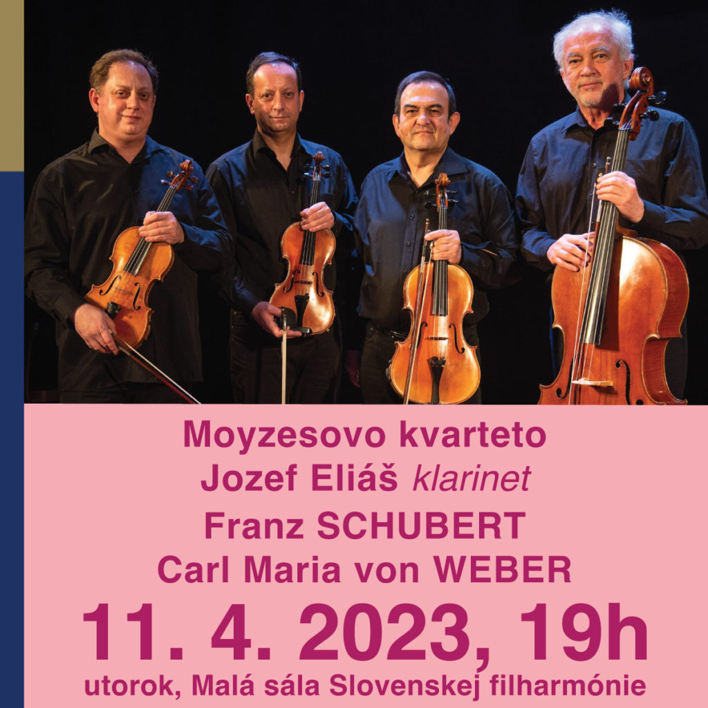 Tretí koncert cyklu Komorná hudba zaznie v utorok 11. apríla 2023. V Malej sále Slovenskej filharmónie vystúpi Moyzesovo kvarteto. Sólistom večera bude Jozef Eliáš, 1. klarinetista orchestra Slovenská filharmónia. Koncert sa začne o 19.00. Program utorkového večera je zostavený z dvoch komorných...