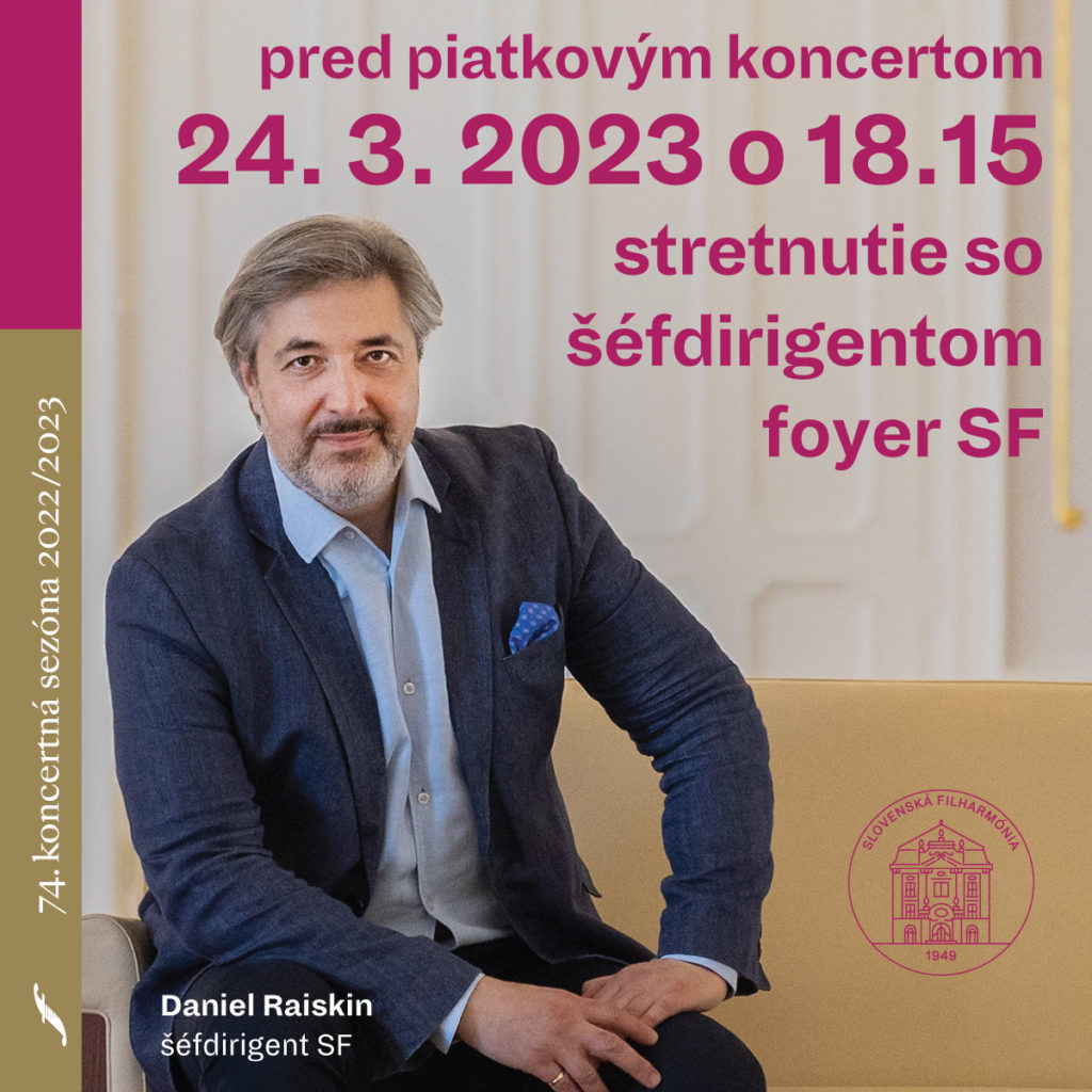 Vo štvrtok a piatok 23. a 24. marca 2023 sa uskutoční v bratislavskej Redute ďalšia dvojica koncertov šéfdirigenta Daniela Raiskina. V jeho naštudovaní budú znieť dve vokálno-inštrumentálne diela. Pred piatkovým koncertom Slovenská filharmónia pozýva návštevníkov na stretnutie so šéfdirigentom Dan...