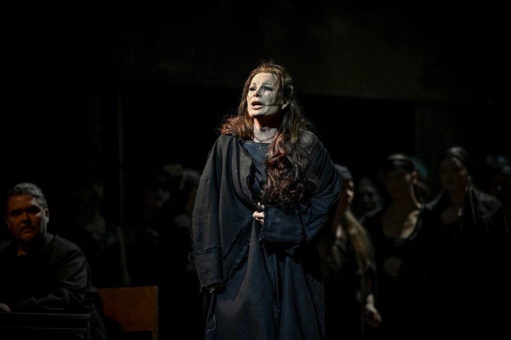 V ďalšom obsadení sme počuli ako Ľutomíru Jolanu Fogašovú, ktorá síce v diele nemá samostatnú áriu, o to viac však hýbe dejom, často sa zjaví na scéne náhle, musí byť vždy pripravená a jej party sú extrémne náročné – po technickej aj výrazovej stránke. Hneď v prvom vstupe naša sólistka podala excelentný interpretačný výkon a potvrdila, že v odbore dramatický soprán je na Slovensku tým najlepším, čo máme. Nastúpila s absolútne bezchybným dlhým držaným g2 vo forte, ktoré klesá v intervale kvarty (často využívaný interval u Suchoňa). Intonačne čistá, čo tiež nie je samozrejmosť, keďže skladateľove party sú tonálne ťažko písané, rytmicky presná s citom pre výstavbu melodiky aj v akcentácii v ostrých rytmoch a výrazovo flexibilná. Taktiež ostrý smiech vo vysokých polohách je interpretačne aj technicky náročným prvkom – v podaní Jolany Fogašovej znel s potrebnou ostrosťou a intonačnou presnosťou. Medzi najnáročnejšie patril jej záverečný výstup v druhom dejstve, začínajúci sa smiechom vo výškach, následne nízkymi polohami, skokmi do vysokých, pričom končí dlhým držaným h2 cez 6 taktov. Počuli sme expresívny, čistý, stopercentný interpretačný výkon a znelý tón vo všetkých polohách.