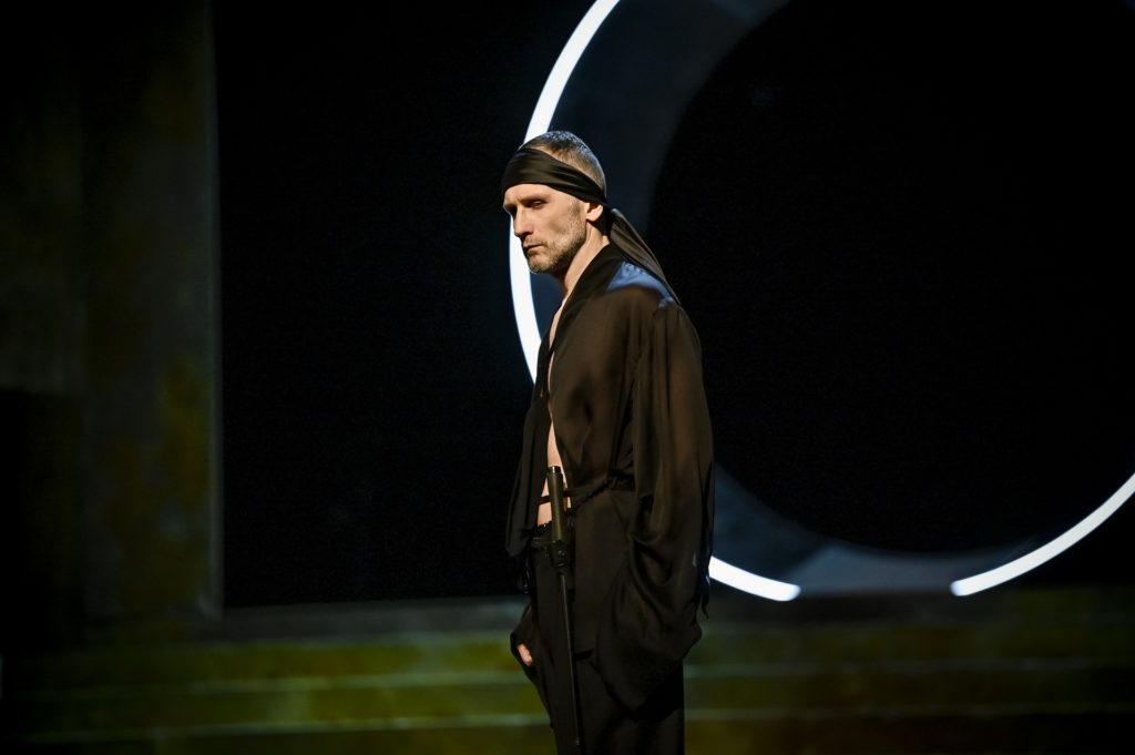 Už pred začiatkom predstavenia sme videli na pódiu zdevastovanú, mohutnú fabrickú halu, vysokú konštrukciu, ktorá čiastočne mohla pripomínať aj hradby. Počas toho, ako sa medzi sebou ľudia voľne rozprávali, pohybovali sa na konštrukcii robotníci (aj počas predstavenia). Sme v 20. storočí, no predsa – aj vo Veľkomoravskej ríši. Hrdinovia odetí prevažne v čiernom s rafinovanými detailmi, občas v kontrastnej bielej, s modernými prvkami, s náznakom historických prvkov – ak je toto otázka, či takto bude vyzerať oblečenie budúcnosti, nepochybne sme tejto vízii kostýmového výtvarníka uverili. Prvky steam punku presvedčilo zapadli do scény a opusteného priestoru fabriky, v ktorom sa vynímali ďalšie moderné prvky signalizujúce súčasnosť prelínajúcu sa do budúcnosti: svetelné objekty. Svetelný kruh. Socha pohanského boha Perúna je svetelná guľa, mesiac a slnko mali podobu svetelných záchvevov, namiesto holubice sme videli dron, dokonca aj laptop sa zjavil na scéne a pritom, v rámci tohto poňatia, všetky tieto rekvizity, nijako nenarušili historickú tému Svätopluka. Naopak, stali jej hnacou silou – motorom, ktorý ju spravil naliehavejšou a otvoril otázky, postavené na historickej téme, nielen smerom k dnešku, ale aj do budúcna. A Polák to spravil veľmi trefne a mimoriadne znepokojujúco. Nie je náhodou toto úlohou divadelného umenia?