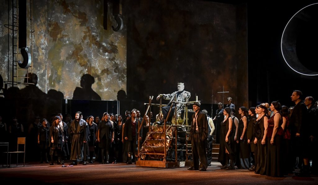 Zbor opery SND pripravila zbormajsterka Zuzana Kadlčíková a mal niekoľko výrazových a dramatických funkcií. Zbor kráľovského dvora v slávnostnom charaktere, sprevádzajúci kráľa, zbor prosebníkov, v druhom dejstve ľud, zbor pohrebníkov, samozrejme, mnoho ďalších dramatických funkcií, v ktorých presvedčili – vyváženou dynamikou, rytmickou presnosťou, zmyslom pre gradáciu a expresivitu (druhé dejstvo). Niektoré časti síce boli na úkor celistvosti fráz a žiadalo by sa ich podstatne viac precítiť zo strany orchestra, no tento faktor nezávisí od pripravenosti zboru, pravda.