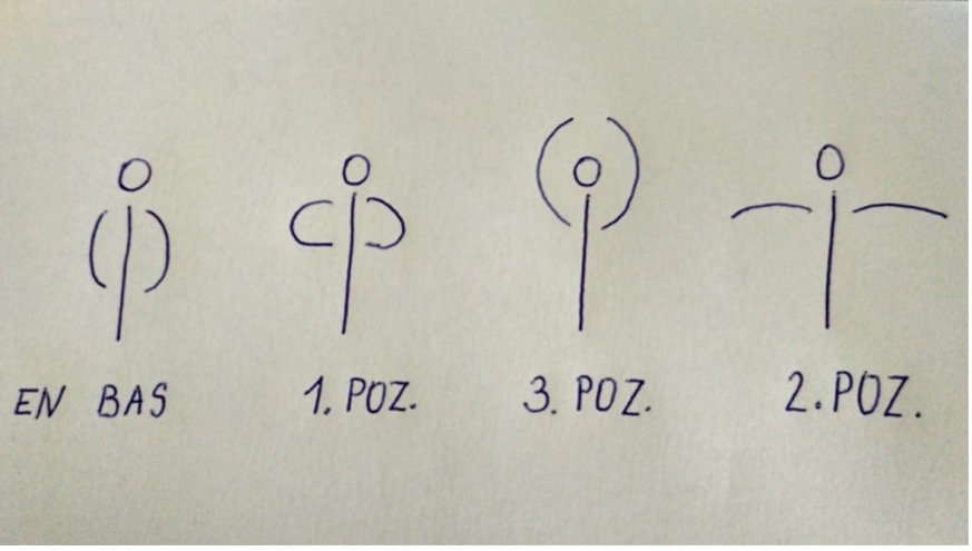 - I. a II. poz. sa používajú v exercices au milieu iba v postavení en face.