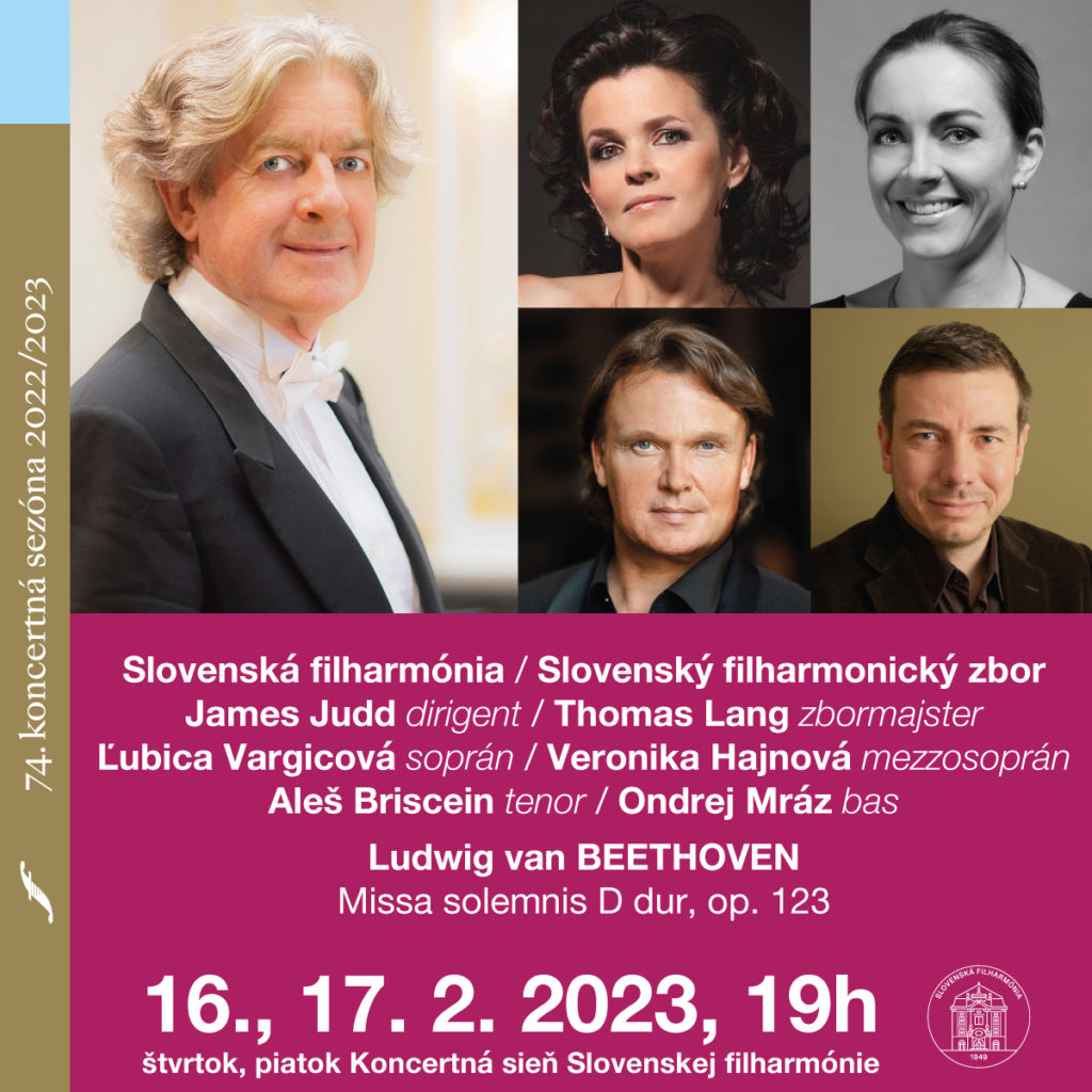 Beethovenova Omša D dur zaznie v Koncertnej sieni Slovenskej filharmónie vo štvrtok a piatok 16. a 17. februára 2023 v interpretácii Slovenskej filharmónie a Slovenského filharmonického zboru. Sólistami večerov budú Ľubica Vargicová, soprán, Veronika Hajnová mezzosoprán, Aleš Briscein tenor a Ondr...