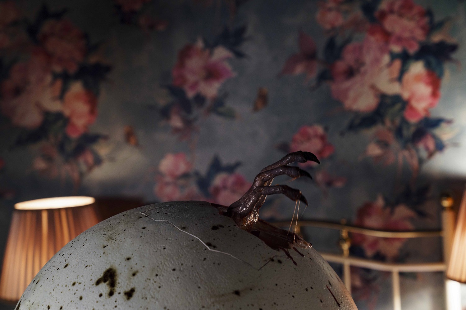 Nesúlad s farebnou kvetinovou domácnosťou, kde všetko iste vonia po ružiach, vytvárajú práve špeciálne praktické efekty, založené na autentickom stvárnení výsostne neprirodzených výjavov. Siiri Solalinna, herecká predstaviteľka Tinji, preto nemusela predstierať očný kontakt so svojim tajomným objavom vyliahnutým z vajíčka. Prítomnosť zla je teda skutočná. Sýty obraz, bohatý na dokonalú krásu je prerušovaný biologickou ošklivosťou, ktorú si nikto nepraje vidieť a je teda na mieste ju schovávať a potláčať. Významová paralela je na svete.