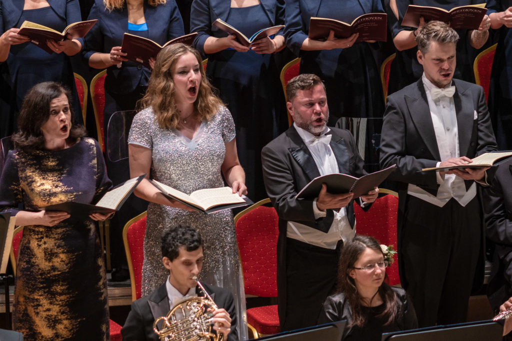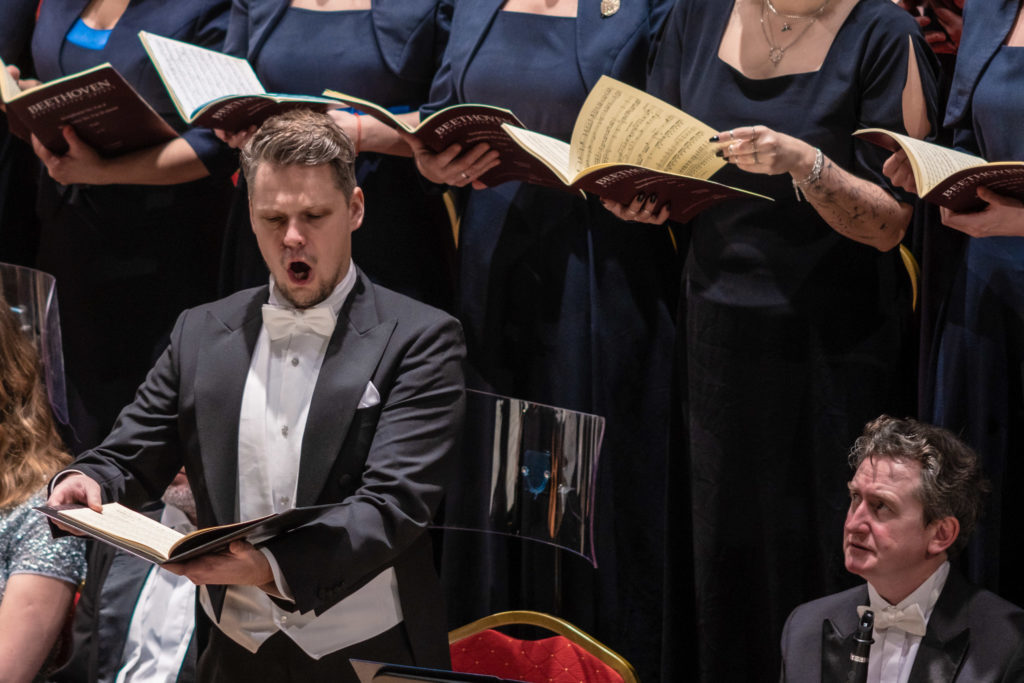 Prvé sólo v podaní basového speváka Petra Kellnera „Oh Freunde, nicht diese Töne“ prinieslo energický prejav speváka, no zároveň podmanivú, krásnu farbu. Kellner je typ interpreta s objemným hlasom, no vie ho používať s inteligenciou a adekvátnym výrazom. Aj vo variácii s výborne pripraveným Slovenským filharmonickým zborom, ktorý znel vyvážene a dynamicky presvedčivo, sólista dostatočne vynikol, bol rytmicky a intonačne presný.