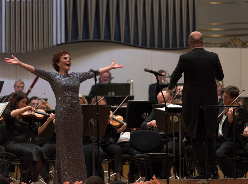 V ďalšom programe sa predstavili sólisti večera - sopranistka Martina Masaryková a tenorista Ľudovít Ludha. Najprv znelo virtuózne číslo koloratúrnych sopránov Glitter and Be Gay, ária Cunegonde z operety Candide. Plná iskrivého humoru, ľahkosti koloratúrnych partov – koketujúcich fráz s divákmi – aj taká môže byť (a dokonca mala by byť) koncertná verzia tohto známeho, náročného partu. V podaní našej sopranistky jej však ešte chýbala ľahkosť a prepracované herectvo, aby dosiahla tento želaný efekt. A v speve sme čakali viac komfortu a jasnosti – najmä vo výškach, ktoré zneli miestami tenzne. Orchester odčlenil hudbu – spočiatku pomalú, v strednej časti svižnú, zreteľne, dokonca dirigent prispôsoboval všetky nástupy speváčke. Iste, bez rekvizít a kulís je náročné pre interpretku zachytiť komediálny charakter tejto árie a v mnohých prvkoch sa ich aj snažila zdôrazniť vtip, no podstatne viac sme dokázali odčítať humorný obsah v hudbe ako v speve. Okrem toho, táto ária je často pre speváčky aj slobodným priestorom pre improvizáciu – najmä v koloratúrach, pre efektnejšie vyznenie pridávajú aj niečo navyše, čo v predlohe nie je zapísané. Masaryková je typ speváčky, na ktorú sa dobre díva, napokon, má na to, aby stvárnila aj party podobného charakteru – či už technicky alebo výrazovo, preto škoda, že z neho nedokázala vyťažiť viac. Hlavný problém interpretácie však bol rytmický – ak by po svojom boku nemala takého skúseného dirigenta, akým je Rastislav Štúr, rytmické problémy mohli byť ešte závažnejšie.