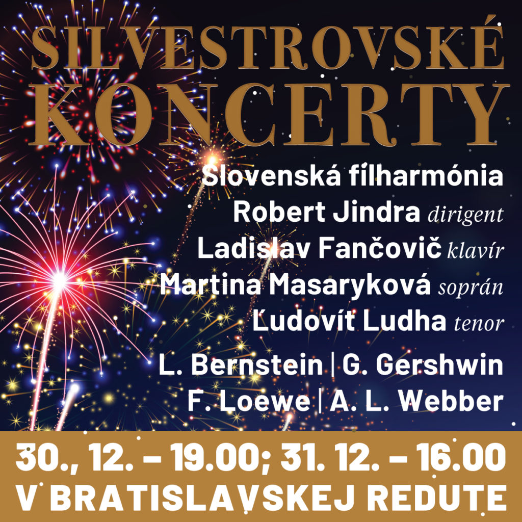 Slávnostná a radostná atmosféra v Koncertnej sieni vyvrcholí na Silvestra a Nový rok. Zabezpečí ju výber diel britských a amerických skladateľov – Leonarda Bernsteina, Georga Gershwina, Frederica Loeweho a Andrewa Lloyda Webbera.
