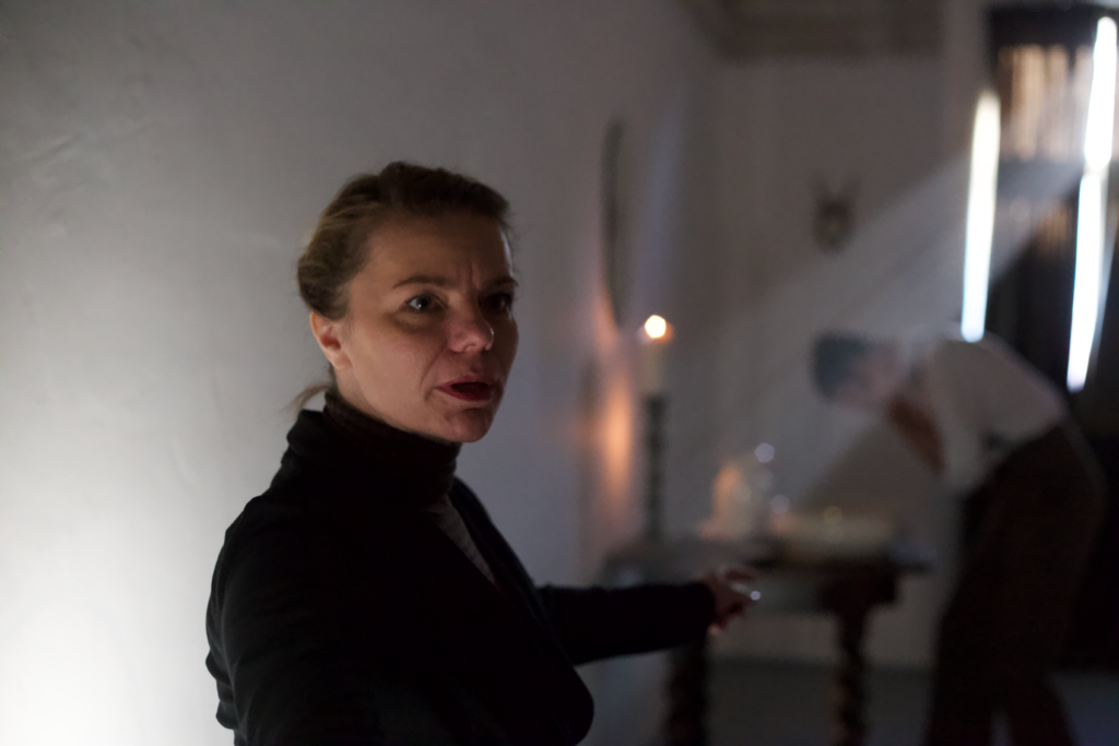 Veľa ma naučila ulica, pretože som sa dlho ešte ako herečka venovala pouličnému divadlu a jeho rôznym formám. V mojom pražskom období však snaha aktívne pracovať s priestorom vyvrcholila tvorbou a réžiou predstavenia CameraObscura, v rámci ktorého sme jednak využívali túto starú technológiu prevráteného obrazu (cameryobscury) a taktiež bolo predstavenie inscenované vo veľkom krásnom päťizbovom byte blízko Václavského námestia.