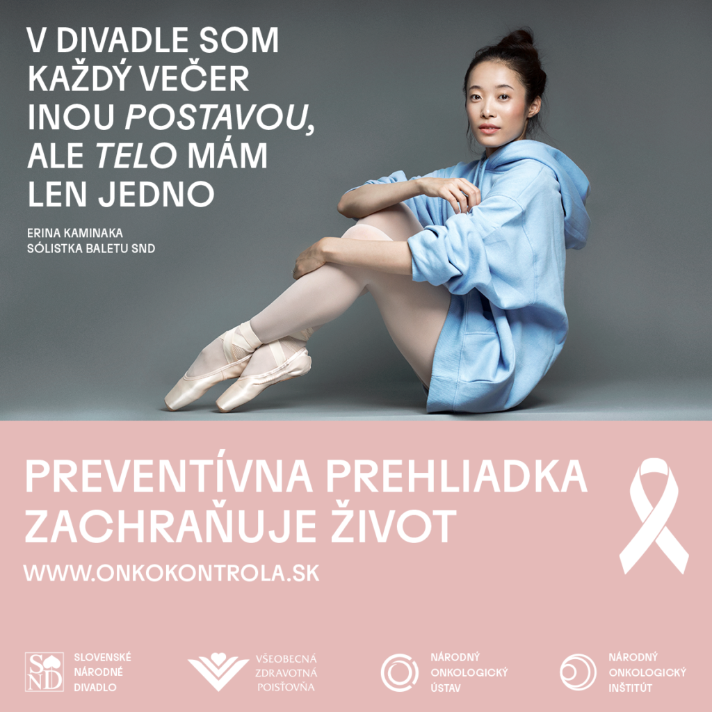 Tvárami kampane na podporu osvety o preventívnych prehliadkach sú sólistka opery Eva Hornyáková, prvá sólistka baletu Erina Kaminaka a herec Činohry SND Tomáš Maštalír. Sloganom „V divadle som každý večer inou postavou, ale telo mám len jedno“, pripomínajú, že preventívne prehliadky zachraňujú život.