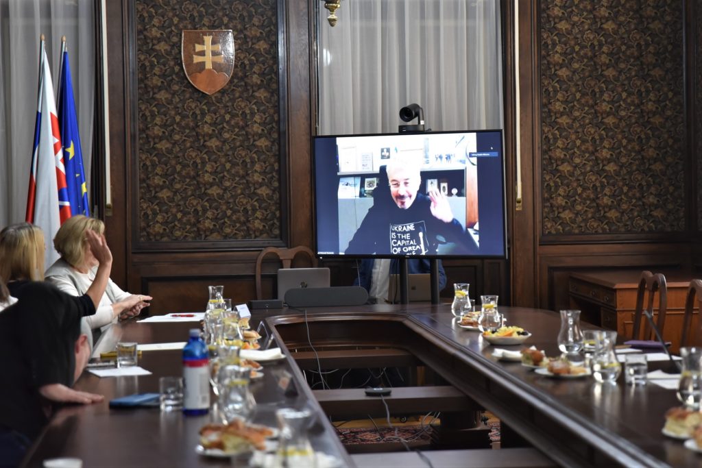 Počas tlačovej besedy sa telemostom spojila aj s ukrajinským ministrom kultúry Oleksandrom Tkachenkom, s ktorým od vypuknutia vojny na Ukrajine intenzívne komunikuje. Spoločne koordinujú kroky podpory v kultúrnej oblasti.