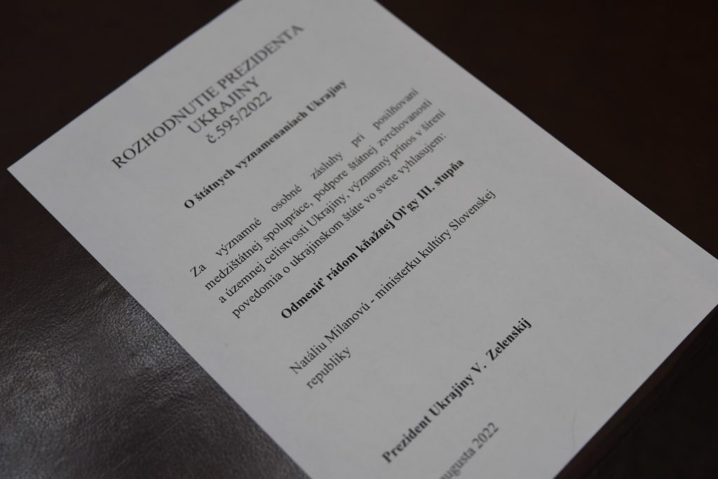 Ukrajinský prezident ocenil ministerku kultúry Natáliu Milanovú Rádom kňažnej Oľgy