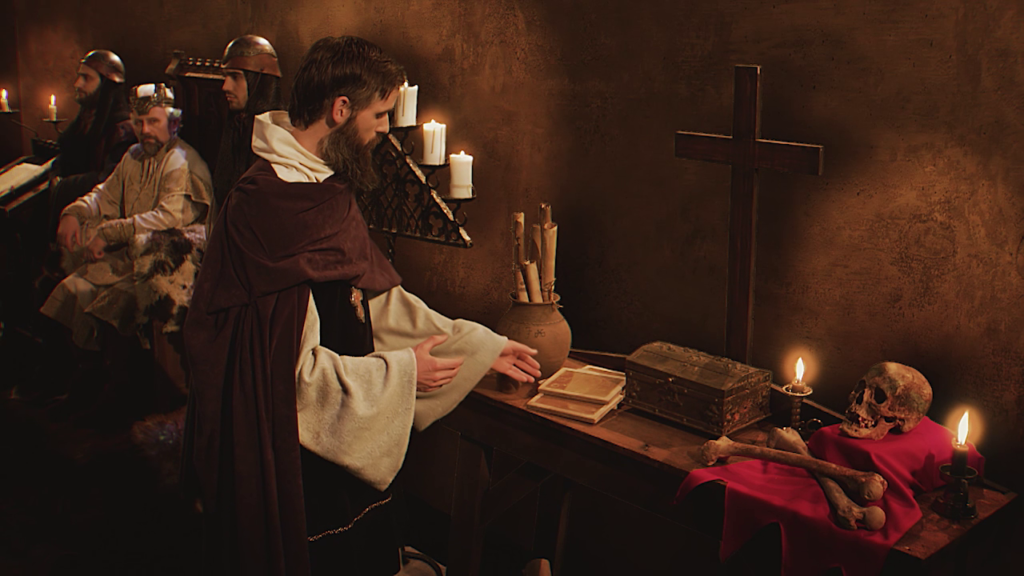 Dokumentárny film obsahuje aj inscenované obrazy znázorňujúce stredovekú školu pôsobiacu v priestoroch chrámu, ktorý stál na Devíne, a ktorého existenciu preukázal archeologický výskum. Školu založili a viedli vierozvestci Konštantín – Filozof s Metodom, ktorí na naše územie prišli na pozvanie moravského kniežaťa Rastislava.