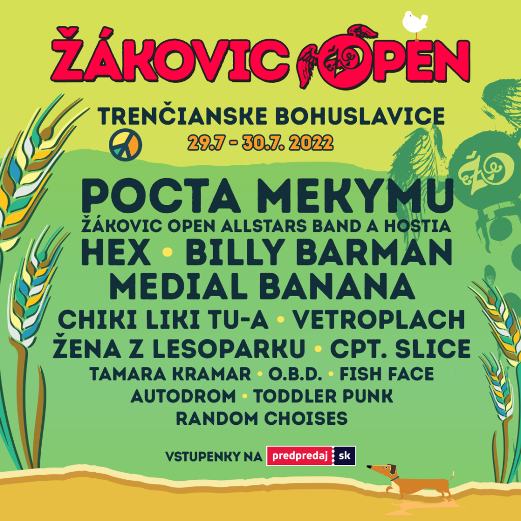 Najobľúbenejší rodinný festival ŽÁKOVIC OPEN si po dvoch rokoch môžete užiť bez obmedzení! 22. ročník festivalu v prekrásnom prostredí Bošáckej doliny vypukne 29. a 30. júla. Do Trenčianskych Bohuslavíc príde zahrať stálica HEX, obľúbenci Billy Barman, Medial Banana, Chiki Liki Tu-a či objav roka T...