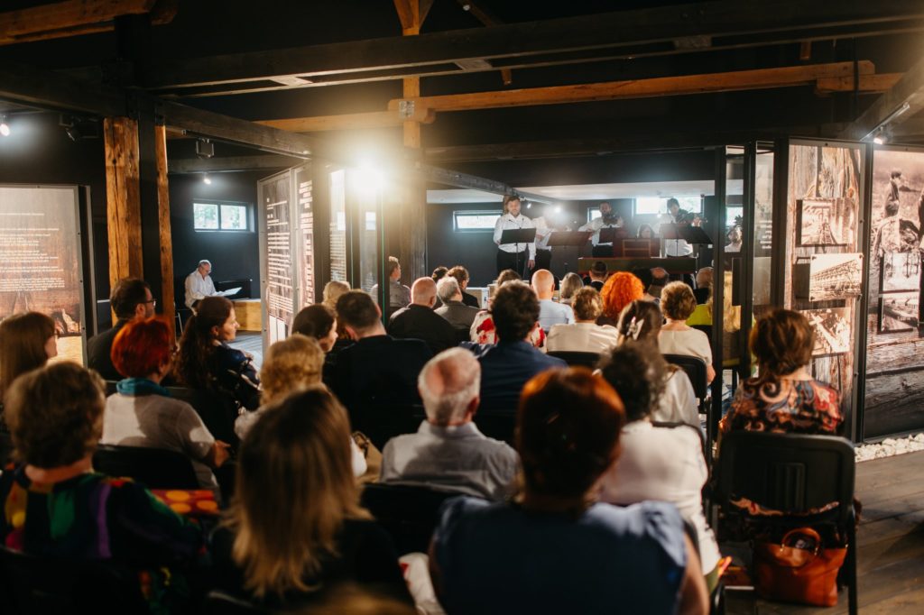 Expozície múzea sú umiestnené v piatich obnovených barakoch a práve v jednom z nich bol koncert. Hudobníkom – komornému súboru Barocco sempre giovane (zložený zo špičkových českých profesionálnych hudobníkov na čele s fenomenálnym hobojistom Vilémom Veverkom) a sólistovi Gustávovi Beláčkovi (bas) bolo určené pódium. Recitátori - Milan Kňažko, Vilma Cibulková a Vilém Udatný boli rozmiestnení podľa hereckej akcie (striedavo blízko hľadiska, za pódium, najviac sa v priestore pohybovala Cibulková), suverénne najviac sugestívnym, emocionálnym prejavom zaujala Vilma Cibulková. Svoju rolu hrala, aj mimo partov recitovania, do role sa vložila absolútne celá. Od dramaticky vypätého prejavu, cez šepkanie, plačlivý tón – jej recitácia textu dojímala k slzám.