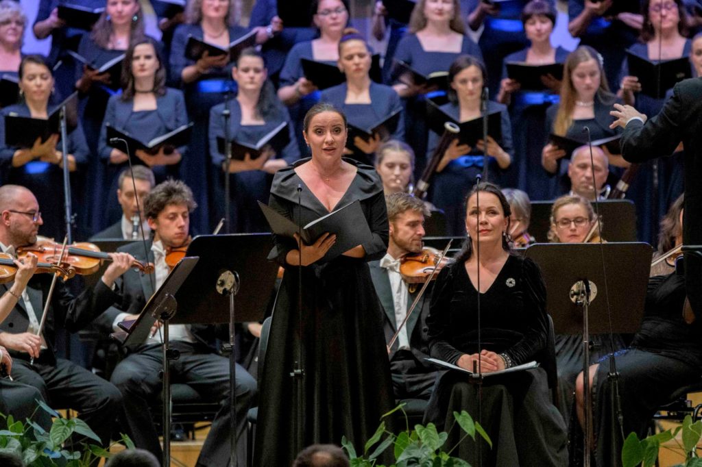 Ale tlieskalo sa výživne a Benedictus Kružliakovej (opäť v rýchlejšom tempe, ako sa hráva) bolo nádherné, precítené a čisté (a to skutočne myslíme bez irónie – sólisti aj zbor spravili maximum). Mezzosopranistka disponuje krásnou farbou, tmavšou, ale pritom do tejto časti dokázala priniesť potrebné presvetlenie.