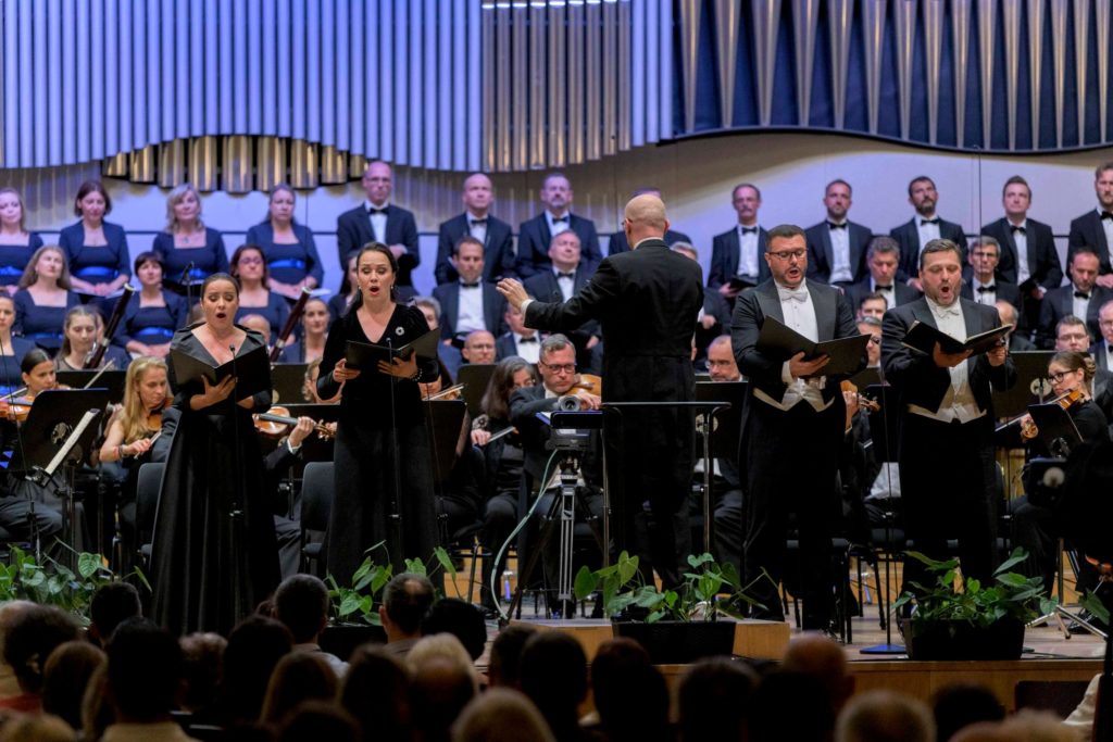 Poďme najprv k programu prvej časti. Mozartovo Rekviem d mol, KV 466 malo znieť v interpretácii všetkých troch telies – Slovenskej filharmónie, Slovenského komorného orchestra a Slovenského filharmonického zboru (zbormajster Thomas Lang). Vokálne sólistické obsadenie bolo vskutku silné: sopranistka Lenka Máčiková, mezzosopranistka Terézia Kružliaková, tenorista Martin Gyimesi a basista Gustáv Beláček. Koncert pod taktovkou dirigenta Martina Leginusa.
