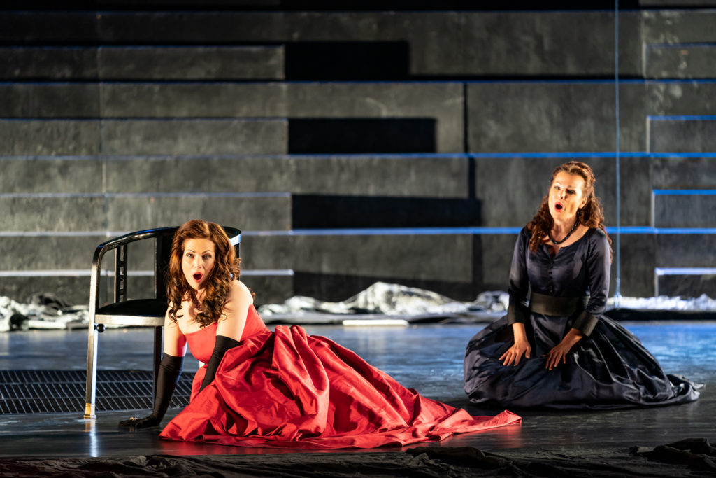 V prvom dejstve sme si všimli, že Valčuha dal orchestru významnejšiu funkciu, ako to robievajú dirigenti. Spravidla nechajú vyniknúť spevákov, no v prípade tejto partitúry má hudba výpovedný význam, psychologicky dotvára dej – je priam kľúčové, aby zneli flautové sóla či ostré sláčiky vo fortissime v dramatických dialógoch. Niekedy skrátka nemožno stišovať orchester len preto, že scéna je minimalistická, režisér či scénograf spevákom vôbec nepomohli, aby sa ich hlasy šírili k divákom do hľadiska. Hudba je samostatným nositeľom drámy, berie si leitmotívy, predvída, napovedá, stvárňuje podstatne viac, preto nechať ju zanikať v pianissimách, by bola fatálna chyba. Navyše, mal pri takomto obsadení výhodu. Všetko to boli sólisti, ktorí dokázali znieť aj pri exponovanom zvuku orchestra, nie tie nové, moderné komorné hlásky, ktoré akosi dnes „splývajú v dave“...