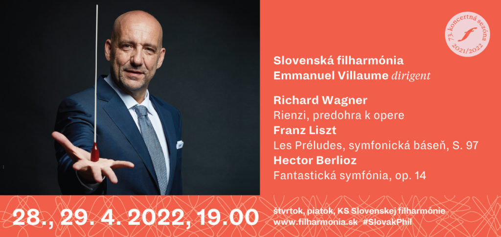 Na záver koncertu zaznie magická Fantastická symfónia, op. 14 Hectora Berlioza s podtitulom Epizódy z umelcovho života. Symfónia bola v premiére uvedená v roku 1830 a priniesla 27-ročnému skladateľovi veľký úspech. Odvtedy sa Fantastická symfónia stala neodmysliteľnou súčasťou programov orchestrálnych koncertov. V Slovenskej filharmónii zaznie v autentickom naštudovaní charizmatického Francúza Emmanuela Villauma.