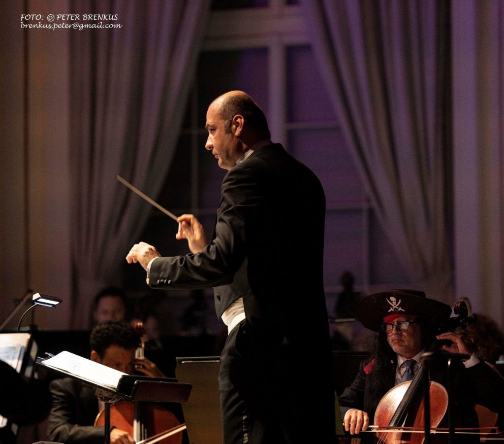 Medzi elitných skladateľov filmovej hudby patrí Hans Zimmer, preto nikoho neprekvapuje, že práve on bol oslovený, aby vytvoril hudbu k filmu Piráti z Karibiku. Na koncerte sme počuli tretiu zo série dobrodružnej „ságy“, ku ktorej patrí, respektíve charakteristickú tvár jej dáva Johnny Depp. Aj vďaka jeho hereckému výkonu sa postava Jacka Sparrowa stala priam legendárnou. Tému Pirátov okamžite rozpoznáte, je to chytľavá hudba, no tretí diel filmu Na konci sveta je špecifický navyše tým, že v ňom využíva Zimmer aj zbor - v úvodnom prevedení v origináli ju spieva mladý chlapec, na konci zbor – filharmonici s nástrojmi sa teda zmenili v Redute aj na spevákov. Následne sa nám otvorilo úchvatné, dynamické dielo plné kontrastov a viacerých vrstiev. V tom je Zimmer absolútny majster – nielen zvukov, ale dokáže rozohrať v orchestri niekoľko tém naraz, vkusne dokonca používa aj motívy z predchádzajúcich častí Pirátov (Prekliatie Čiernej perly). V podstate sme počuli prierez soundtrackom – niekoľko skladieb, od začiatku, až po záverečnú skladbu Drink Up Me Hearties (titulková skladba pripomínajúca ústrednú tému Sparrowa). Výrazovo orchester zvládal meniť polohy od zábavnej, dobrodružnej, cez dramatickú, či optimistickú, napätú – skladby boli mimoriadne variabilné a inštrumentálne invenčné. Je to nepochybne jedna z najlepších partitúr, aké kedy vznikli k filmu. Skladba Singapore využíva hudobno-výrazové prostriedky čínskej hudby – stretávajú sa v nej kultúry dvoch kontinentov, pomalšiu verziu témy sme si vypočuli v kompozícii s názvom I See Dead People in Boats a veľmi múdro bolo prehodené poradie na koncerte, keďže vo filme odznela pred skladbou Up Is Down (hoci na soundtracku je to presne naopak). Zimmer dokáže majstrovsky pracovať s orchestrom: namixuje husle, flautu, ale i raritnejšie používané nástroje a aj menej tradičných kombinácií a dosiahne unikátny zvuk. A samozrejme, hojne využíva bicie nástroje, čím dosahuje nebývalú dynamiku a napätie. Piráti mali samozrejme najväčší úspech u publika – jednotlivé skladby po sebe nasledujúce boli v podaní orchestra zahraté so švihom, nespútanou energiou a aj vďaka tomu, hráči využili rekvizity a nasadili si klobúky v štýle hlavnej postavy. Bolo to živé, farebné, dynamické – nielen po hudobnej, ale i vizuálnej stránke.