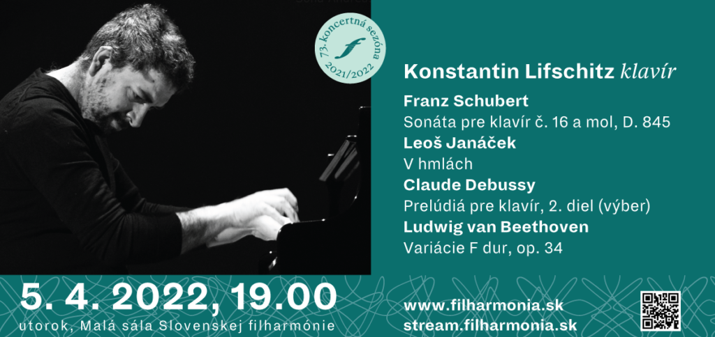 Konstantin Lifschitz vyštudoval moskovský inštitút pre nadané deti. Žije a pôsobí vo švajčiarskom Luzerne a koncertuje naprieč Európou. Program v Malej sále Slovenskej filharmónie zostavil z diel viacerých skladateľov - Franza Schuberta, Leoša Janáčka, Claudea Debussyho a Ludwiga van Beethovena.