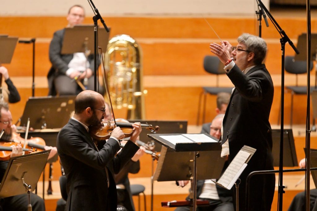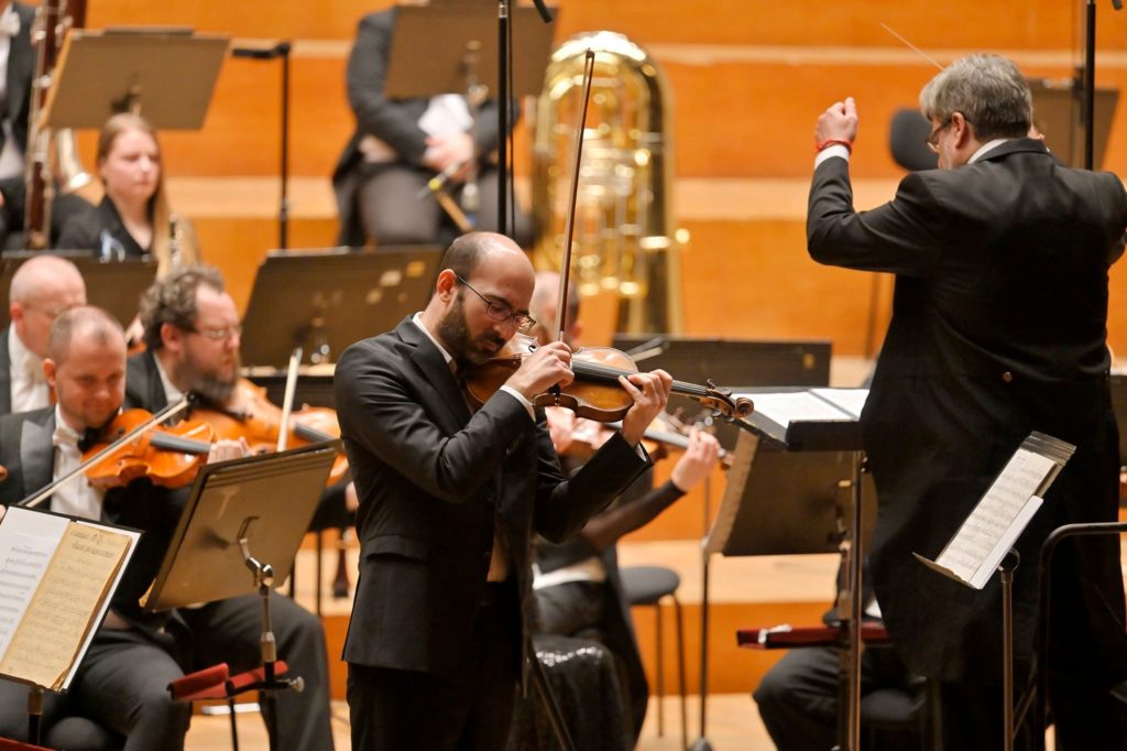 V druhej časti koncertu sme sa dostali k dielu Dmitrija Šostakoviča. Koncert pre husle a orchester č. 1 a mol, op. 77 ako sólista interpretoval Alexandre Dimcevski, ktorý v súčasnosti pôsobí v Maďarskej štátnej opere. Ešte pred hodnotením jeho výkonu sa mu určite oplatí venovať pár slov. Dimcevski je všestranný umelec: vystupuje ako sólista, komorný hráč, pôsobí aj ako koncertný majster a pedagóg. Narodil sa vo Francúzsku v rodine ruského a macedónskeho pôvodu a začal sa učiť hrať na husle pod vedením svojho otca, ktorý bol sám žiakom Jurija Yankeleviča, a tak sa jeho vzdelávanie začalo v duchu tradičnej ruskej školy.