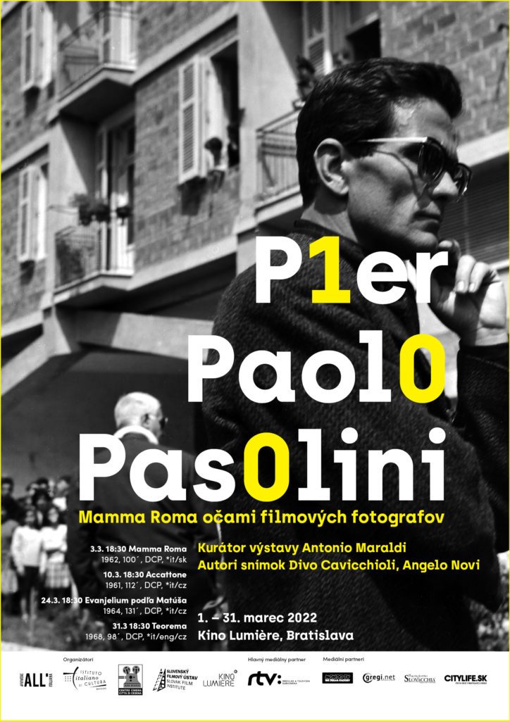 Dejiskom projektu „Pasolini 100“ sa na mesiac marec stalo Kino Lumière – kino Slovenského filmového ústavu. Už od 3. marca je v jeho priestoroch sprístupnená výstava fotografií, ktorá návštevníkov zavedie na nakrúcanie slávneho filmu Piera Paola Pasoliniho Mamma Roma s Annou Magnani v hlavnej úlohe. Film mal premiéru presne pred šesťdesiatimi rokmi, v roku 1962 na XXIII. Medzinárodnom filmovom festivale v Benátkach. Vystavené fotografie pochádzajú z archívu Centro Cinema v Cesene a ich autormi sú Divo Cavicchioli (1924 – 1996) a Angelo Novi (1930 – 1997), pričom obaja spolupracovali s Pasolinim aj pri iných filmoch. Dnes je ťažké určiť autorstvo jednotlivých fotografií, dá sa však pomôcť použitou technikou. Cavicchioli fotil na Rolleiflex (štvorcový negatív 6x6), zatiaľ čo Novi, pôvodným povolaním fotoreportér, používal Leicu (obdĺžnikový negatív, 35 mm). Kurátorom výstavy je Antonio Maraldi.
