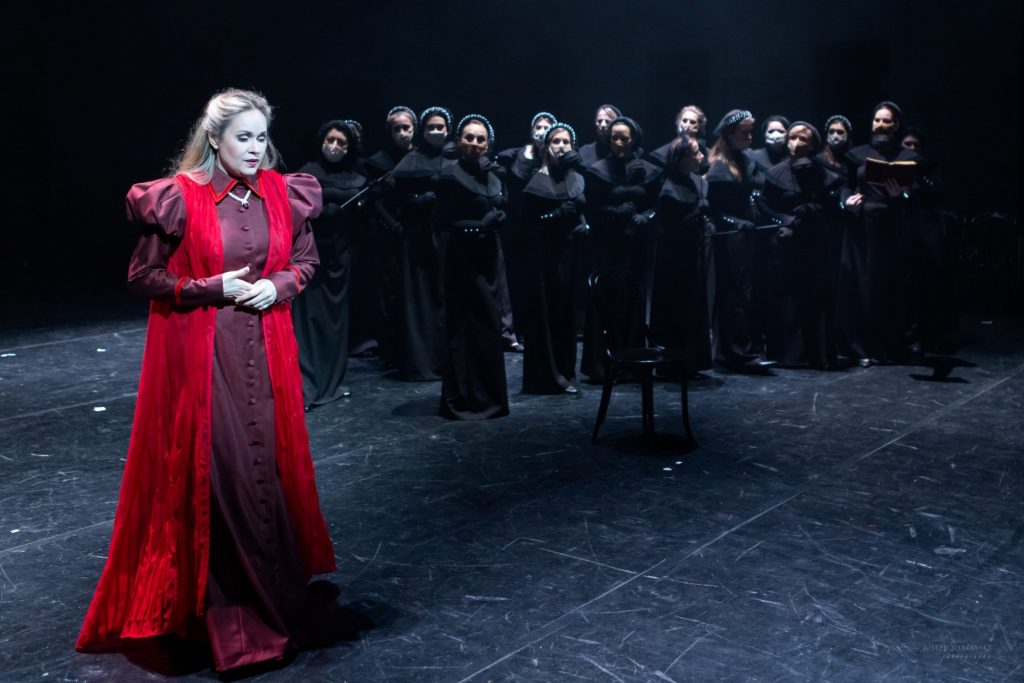 Nádherná hudba Gaetana Donizettiho zaznie v Prahe v jedinečnom sólistickom obsadení. V titulnej postave Alžbety, anglickej kráľovnej, uvidia diváci hosťujúcu sopranistku Evu Bodorovú, vychádzajúcu hviezdu slovenskej opery. V postave Sáry, vojvodkyne z Nottinghamu, sa predstaví hosťujúca ruská mezzosopranistka Elena Maximova, ktorá prichádza do Prahy priamo z milánskej La Scaly.
