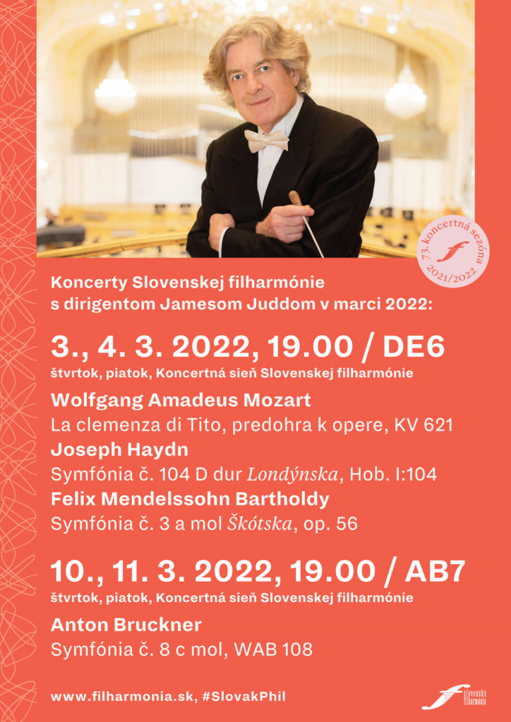 Slovenská filharmónia sa na dvoch marcových symfonických dvojiciach predstaví pod taktovkou Jamesa Judda, bývalého šéfdirigenta SF. Vo štvrtok a piatok 3. a 4. marca sú na programe diela Wolfganga Amadea Mozarta, Josepha Haydna a Felixa Mendelssohna Bartholdyho. Aj týmito koncertmi vyjadria Slovens...