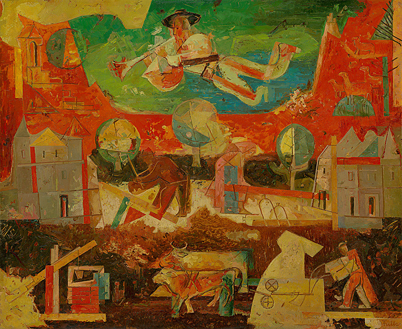 Práve tieto prvky sa stali charakteristickým maliarskym rukopisom Fullovho moderného výtvarného jazyka, ktorý sa naplno prejavil v jeho najrozsiahlejšom a najkomplexnejšom obraze Pieseň a práca (1934-1935). Epicky poňatá freska vyobrazujúca život a prácu slovenského ľudu je po vzore stredovekého nástenného rozprávania rozvrhnutá do troch pásov, pričom scény s oráčom a vykopávaním zemiakov sú doplnené o geometrické fragmenty krajiny a architektúry. Nad všetkými týmito obrazmi akoby prirodzene poletuje hrajúci muzikant. Obraz predstavuje dokonalé spojenie moderného spracovania tradičnej témy ako i spojenie stredovekej tradície s avantgardným videním sveta. Fulla týmto dielom jednak pokračoval v téme vyobrazenia slovenského pracujúceho ľudu, ktorá bola v našom umení dlhodobo prítomná, jeho prístup k nej bol však novátorský a inovatívny.
