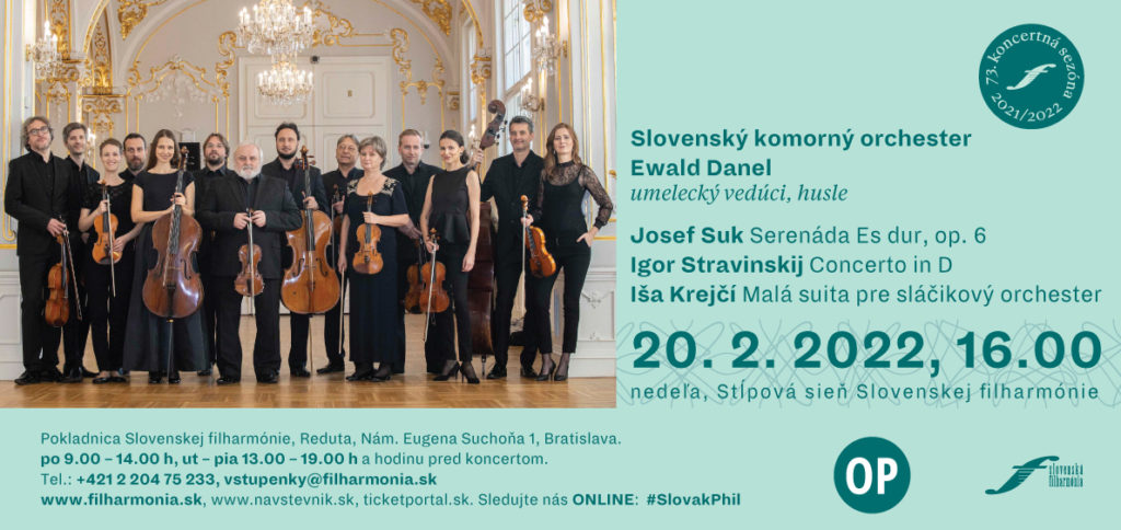 V nedeľu 20. februára pozývame do bratislavskej Reduty všetkých priaznivcov Slovenského komorného orchestra - umelecký vedúci Ewald Danel. V Stĺpovej sieni Slovenskej filharmónie zaznie program zostavený z diel Jozefa Suka, Igora Stravinského a Išu Krejčího Nedeľný koncert komorného orchestra sa k...
