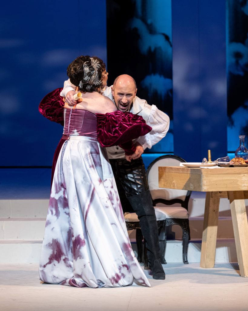 Lukáč nielenže disponuje prirodzene krásnou farbou hlasu, no ako spevák má prirodzený dar počúvať orchester – v jeho podaní nikdy nepočujete intonačne nečistý tón a navyše, ani v exponovaných pasážach neforsíruje, no znejú s potrebnou intenzitou. Dramatické pasáže dokáže podať v kombinácii s hereckým prejavom, uhrančivým, zlým pohľadom tak, aby ste mu uverili charakter skorumpovaného Scarpiu, ktorého stvárňuje. Jeho postava však nie je len tyranom a surovcom tak, ako ju prvoplánovo chápu mnohí operní speváci. Lukáč, našťastie, dokázal stvárniť v Scarpiovi podstatne viac polôh: v obsahovej línii, keď dochádza k zlomu a uvedomí si, že Tosca ho dovedie k obom mužom – k Mariovi či hľadanému Angelottimu, ukáže, ako rýchlo sa vie dostať do ženskej duše a vzbudiť v nej žiarlivosť. V druhom dejstve priznáva svoj pokrivený charakter pred všetkými – je to akési jeho osobné „krédo“, ktoré doznáva pred všetkými. Pokrivené charaktery tak spravidla nečinia. A po tretie, Scarpia je síce ľstivý a násilnícky, no treba priznať, bystrý, inteligentný barón so spôsobmi (nie, nerobíme z neho lákavú pozitívnu postavu, vždy je to negatívny hrdina, no často je vnímaný veľmi plocho, čomu sa v Opere ŠDKE vyhli). To všetko Marián Lukáč dokázal dostať do postavy vďaka prepracovaniu charakteru a presvedčivému speváckemu výkonu.