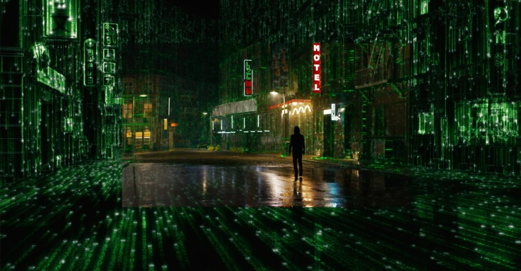 Alebo aj nie. V blahej nevedomosti sledujem, ako prsty Thomasa Andersona (Keanu Reeves) lietajú po elegantnej klávesnici, kým sa do miestnosti cez okná od podlahy až po strop vlieva svetlo a odráža sa v jeho žiariacich očiach, ktoré behajú sem a tam po nastavaných počítačových monitoroch. Nemôžem si pomôcť a mysľou zaletím do čias, keď ho malá červená pilulka preniesla zo života kancelárskej krysy do reality zamorenej apokalypsou, takže byť tu, teraz… Trochu sa mi točí hlava. Toto nie je zasmušilý heker, ktorý svojou prítomnosťou prvýkrát poctil strieborné plátno na začiatku nového milénia. Namiesto toho sa ocitáme tvárou v tvár pánovi Andersonovi oblečenému podľa najnovšieho diktátu nonšalantnej kancelárskej módy: v mikine s kapucňou, v teniskách a s dlhými riedkymi čiernymi vlasmi. Núti nás to pýtať sa, kalibrovať a rekalibrovať. Je toto prítomnosť, alebo budúcnosť? Je toto skutočný svet, alebo Matrix? Je toto Thomas Anderson, alebo posmrtné prevtelenie kyberspasiteľa Nea?