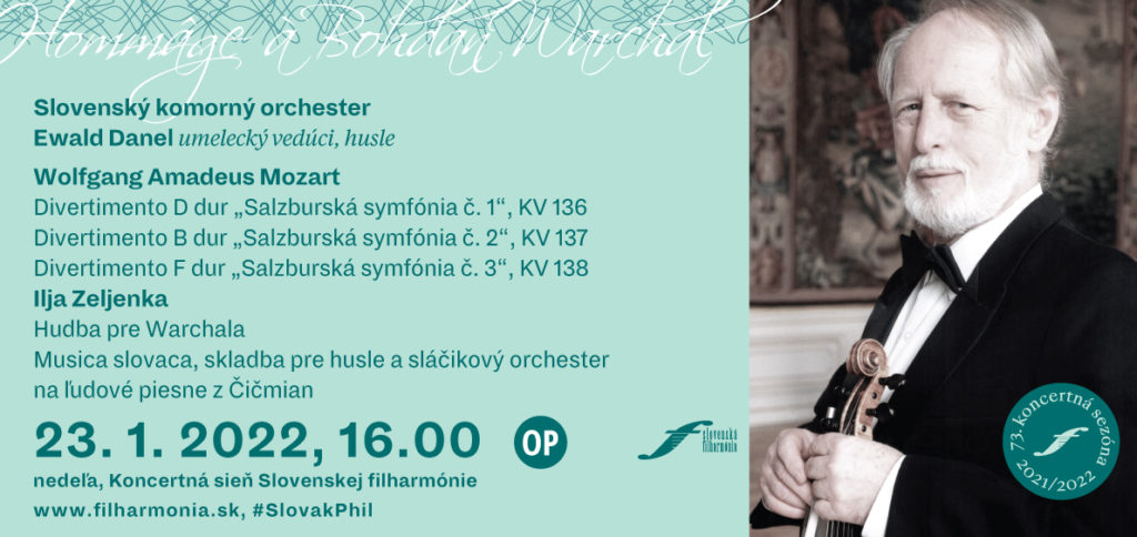 Na úvod programu budú znieť tri Divertimentá B dur, D dur a F dur, ktoré dnes nazývame „Salzburské symfónie“ Wolfganga Amadea Mozarta. Pravdepodobne sa nimi chcel skladateľ prezentovať na turné v Taliansku. Nasledovať budú dve diela Ilju Zeljenku komponované pre Warchala a komorný orchester. Hudba pre Warchala a jedno z najobľúbenejších diel poslucháčov Musica slovaca. Koncert je zároveň prvý z radu koncertov v rámci roku 2022 venovaných 90. výročiu narodenia skladateľa Ilju Zeljenku.