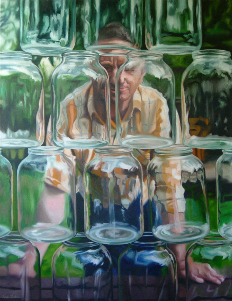 V oboch prípadoch sa nástrojom iluzívneho pohrávania stáva sklo – sklenené okno a sklenená stena vytvorená z veľkých fliaš. Za nimi sa v nejasných, rozkmitaných a rozmazaných siluetách objavuje postava chlapca a dospelého muža. Sklo marí možnosť jednoznačnej čitateľnosti ľudskej figúry, zasahuje do divákovho vnímania a núti ho k hlbšiemu ponoru do obrazu. Rozmazávanie, rozostieranie či dokonca pootáčanie reality je jeden z charakteristických znakov Žirkovej tvorby, ktorý jej umožňuje hrať sa s realitou – tou skutočnou i umeleckou – a hrať sa s divákovým vnímaním.