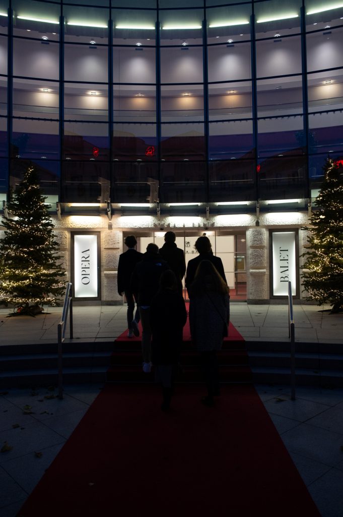 Pred novou budovou Slovenského národného divadla už od skorého popoludnia vyrastajú dva veľké vianočné stromčeky. Pracovníci divadla ich ozdobujú svetielkami, pred vstupom do opery naťahujú červený koberec.