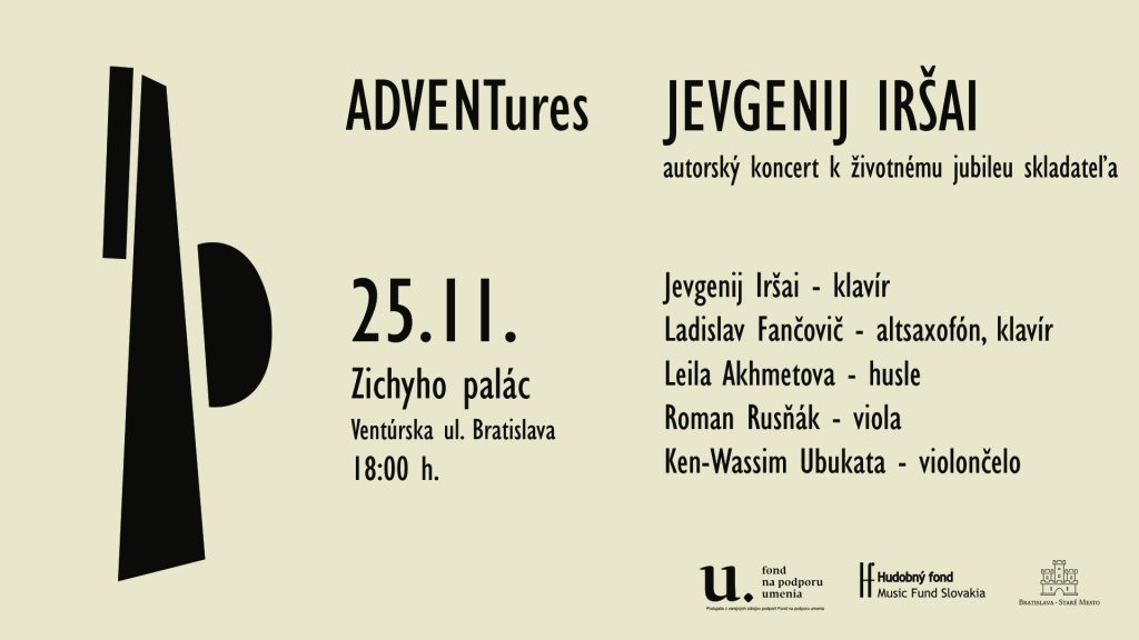 Zaznejú autorské skladby Iršaia, niektoré v svetovej premiére. Vzhľadom na lockdown sa hudobníci presunuli do online priestoru, no i tak vás čaká výnimočný zážitok so samotným skladateľom Jevgenijom Iršaiom za klavírom, virtuózom Ladislavom Fančovičom, ktorý už štandardne bude striedať altsaxofón i...