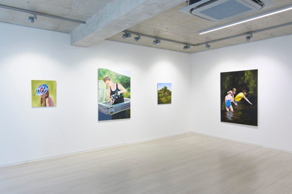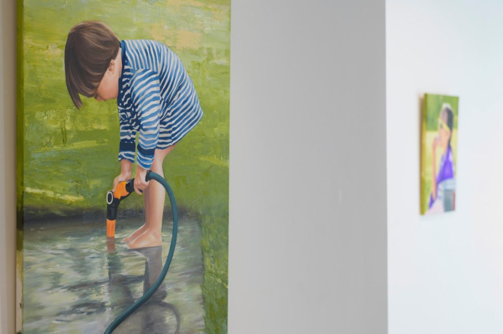 Na výstave je prezentovaná kolekcia úplne nových diel menších aj veľkoplošných formátov, na ktorých akoby ešte nestihla vyschnúť farba, doplnená o výsostne komorné obrazy chránené sklom. Autorka zobrazuje reálne situácie bežného života, nie sú v ničom výnimočné, skôr ide o každodenné pozorovanie svojho okolia, ktoré zaznamenáva. Situácie, prostredie, „téma“ sú zachytené ako na fotografiách a fungujú ako návrat do minulosti vo vlastných individuálnych spomienkach. Hoci na jednej strane je zobrazenie realistické, nezachádza do detailov, nekopíruje, ale ponecháva v maľbe vôľu aj na abstraktnejšie a uvoľnené gesto. Koncentruje sa na prirodzenosť situácie, pohybu, konkrétneho výjavu, neprikrášľuje a nezdobí. Inšpiráciou je krajina a človek v elementárnej polohe často v prírode, pri jazere, pri mori, alebo pri, či po práci, skrátka v bežnom živote, prítomné je aj dieťa v skupinovej, alebo individuálnej hre.