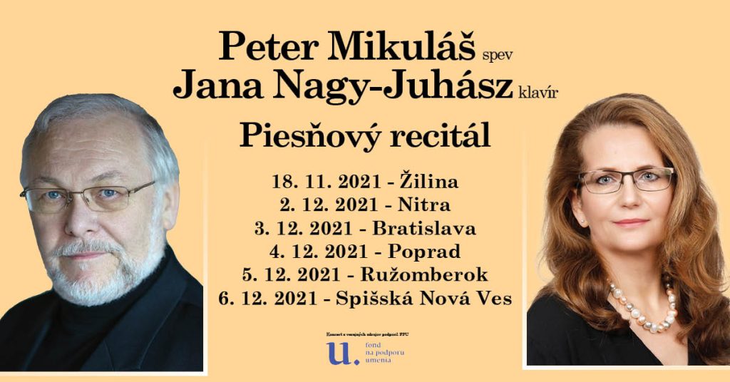 Na blížiacich sa koncertoch v šiestich slovenských mestách ponúkne spolu s klaviristkou Janou Nagy-Juhász piesňové cykly viacerých skladateľov – Ladislava Holoubka, Pavla Haasa, Eugena Suchoňa a výber romancí od Sergeja Rachmaninova. V úvode programu si vypočujeme tri intímne, krehké, no vokálne náročné piesne Ladislava Holoubka na básne Pavla Országha Hviezdoslava Spevy jesene s nostalgickou náladou. Nasledovať bude skladateľov cyklus Panpulóni, štyri humorné a detsky zábavné piesne na slová Miroslava Válka.