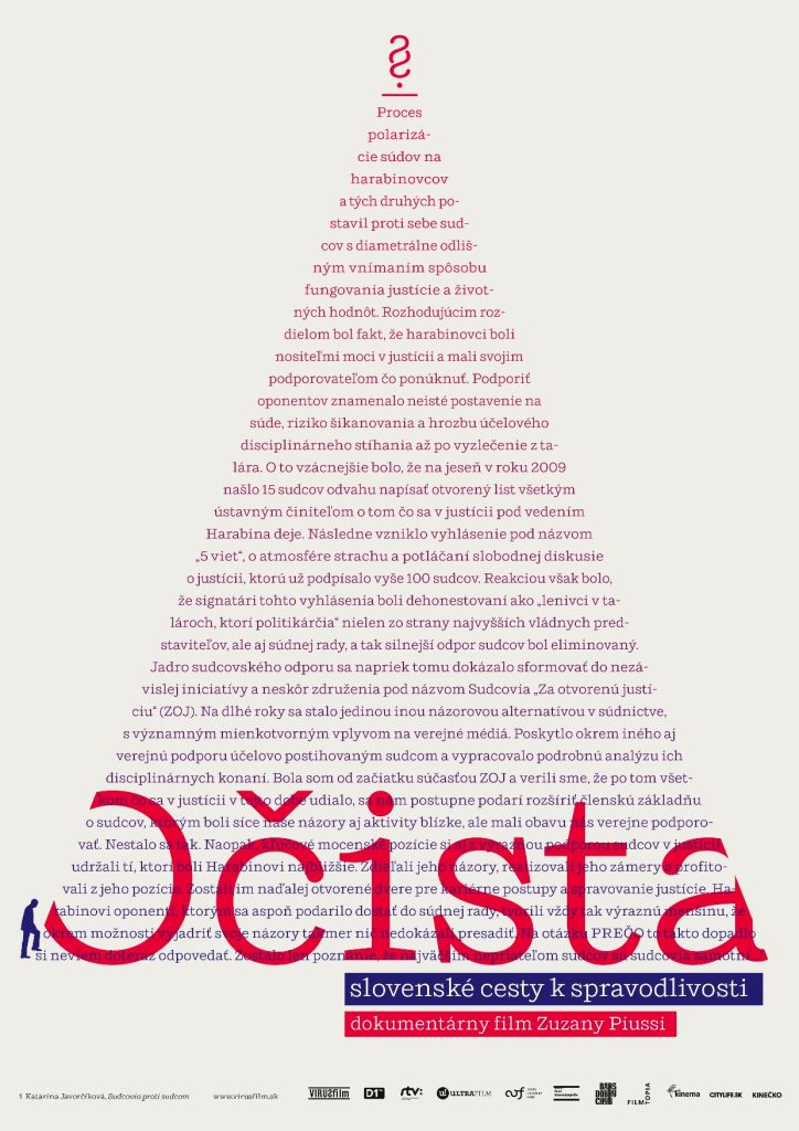 Zuzana Piussi pripomína, že na Slovensku je najnižšia dôvera v justíciu, v Európskej únii. Film by mohol pomôcť naštartovať debaty o tom, čo je spravodlivé súdne rozhodnutie. „Kočnerova Threema ukázala, ako sa manipulujú súdne rozhodnutia. Myslím si, že to bola jedna z hlavných tém volebnej kampane, heslo znelo: Spravodlivosť pre každého!. Po dvoch rokoch sa ukazuje, že heslo sa nenapĺňa. Filmu som sa venovala tri roky a myslím si, že najväčším problémom slovenských súdov sú prieťahy, to že sa súdite desať rokov, stojí vás to kopec peňazí a možnosť spravodlivosti, rozhodnutia súdu vidíte v nedohľadne. V našej krajine sa neviete včas domôcť spravodlivosti, a neskorá alebo zmanipulovaná spravodlivosť nie je žiadna spravodlivosť,“ vysvetľuje Zuzana Piussi.