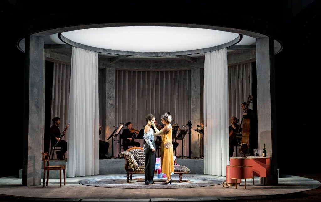 Julie Weideli je fantastická dizajnérka. Vyrobila krásnu scénu so závesmi, ktoré môžeme symbolicky využiť. Keďže máme hudobníkov na pódiu, používame ich a hudbu ako emóciu (samozrejme, hudba sama o sebe je emócia). Takže keď chce Violetta prejaviť emócie – napríklad, keď je v prvom dejstve zamilovaná, otvorí vnútorné závesy a diváci uvidia hudobníkov. Keď sa však snaží skryť svoje emócie - napríklad v duete s Germontom, zatiahne závesy.