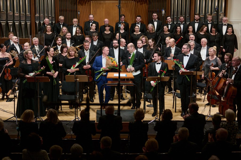 V úvode programu so začiatkom o 19:00 znela Symfónia č. 38 D dur KV 504 „Pražská“ Wolfganga Amadea Mozarta. Dodnes ma máta v hlave, čo bol toto za nedomyslený „dramaturgický počin roka“ – vybrať práve Mozarta a práve toto dielo. Nikto nepochybuje o kvalitách Mozartovho komponovania, jednej z jeho najobľúbenejších symfónie, ktorá dostala prívlastok podľa mesta svojej premiéry. Vieme, že Mozart mal Prahu a jej obyvateľov rád, na rozdiel od vrtkavých Viedenčanov. Azda toto je jediné prepojenie, ktoré s určitým nadhľadom dokážeme vidieť v dramaturgii koncertu: