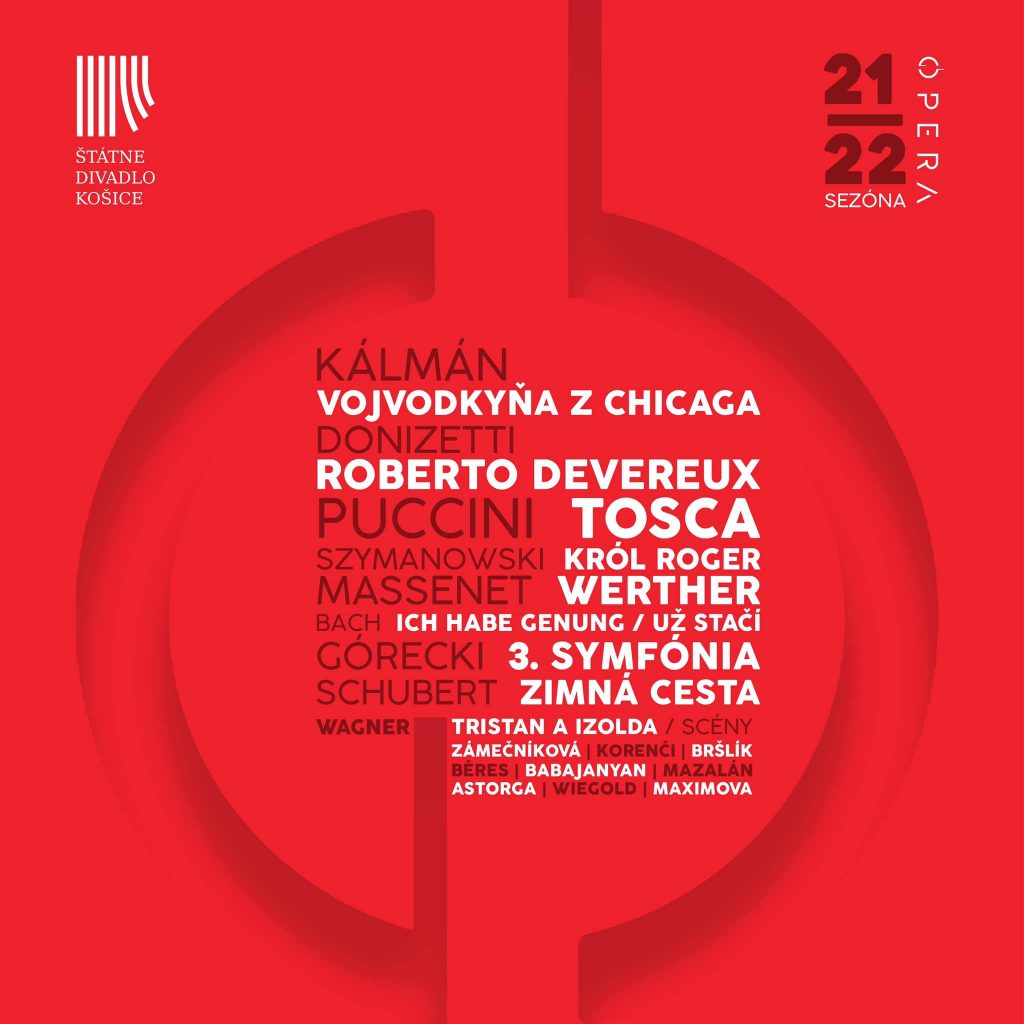 V januári (28. a 29. 1.). divákov čaká jeden z najznámejších operných titulov – Tosca Giacoma Pucciniho. Melodramma v 3 dejstvách, ako ju nazval sám Puccini, je veľkou opernou freskou, plnou melódií a emócií na historickom pozadí takmer filmového príbehu, v ktorom hlavní hrdinovia sú vrhnutí hrubou silou osudu zo sna svojho žitia v ústrety smrti. V druhej časti sezóny prinesie Opera ŠDKE scény z Wagnerovho veľkolepého opusu o protiklade lásky a smrti, dňa a noci - z opery Tristan a Izolda, hudobne naštudované ešte v dobe pandémie pod vedením Petra Valentoviča.