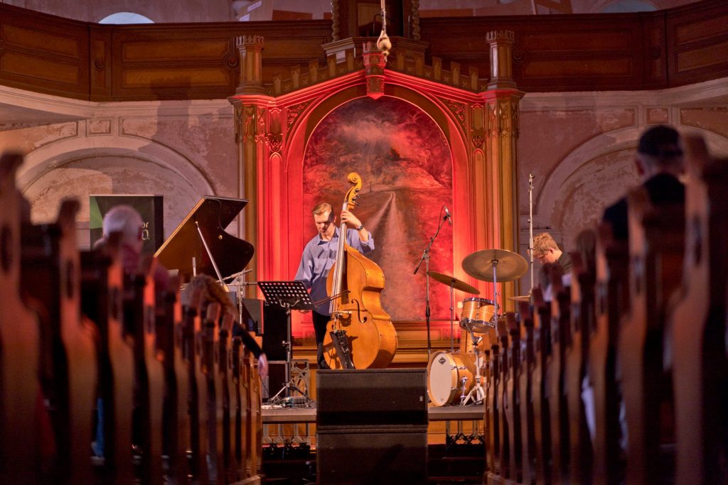 Ďalším epicentrom festivalu Zvuk for Modra je Nemecký evanjelický kostol, v ktorom sa často konajú koncerty aj mimo tohto podujatia. Jeho výnimočná akustika a fascinujúci priestor tvorený mohutnými piliermi a klenbovými konštrukciami vytvárajú z koncertov výnimočné hudobno-vizuálne zážitky. Najmä z jazzových vystúpení, ktoré sú „šmrncnuté“ experimentom. Také bolo aj vystúpenie charizmatického klaviristu, Paweła Kaczmarczyka, ktorý vystúpil so svojím Triom - Alanom Wykpiszom (kontrabas) a Grzegorzom Pałkom (bicie nástroje). Kaczmarczyk patrí medzi najvýraznejšie postavy mladej poľskej jazzovej scény, jeho albumy boli ocenené množstvom cien – šesť krát vyhral v súťaži Jazz Top v časopise Jazz Forum, získal päť jazzových „oscarov“ a mnohé ďalšie.