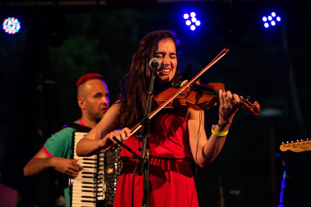 Nina Rosa akoby ani neprišla z tohto sveta. Je to bytosť, ktorá má špeciálny dar: putuje po svete, je neuveriteľne vnímavá a svoje zážitky dokáže prerozprávať prostredníctvom hudby. Je pritom úplne jedno, kde sa nachádza: či vo Zvolene na vlakovej stanici na toaletách, kde práve nemá drobné, tak zahrá na husliach a vďaka tomu sa tam udeje transcendentálny zážitok alebo vo Francúzsku. Každé prostredie má pre ňu osobitú poetiku a emócie, ktoré prežíva, dokáže pretransformovať do hudobnej reči tak, že zrazu sa na jej výletoch ocitnete aj vy. Nie sú to však bežné, rutinné cesty: vždy sa treba pripraviť na to, že túto interpretku je potrebné aktívne počúvať. Za vizuálne krehkou a romantickou bytosťou sa skrýva technicky brilantná hudobníčka, ktorá husle ovláda s absolútnou bravúrnosťou. Dokáže sa pohybovať v zložitých metrorytmických štruktúrach, využíva registre, ktoré nie sú celkom bežné a hudobné obrazy dofarbuje v kapele ďalším originálnym nástrojom: akordeónom (Michal Mihok). Možno je v našich končinách nie celkom docenený, ale to, čo sa na ňom dá dosiahnuť, aj čo sa týka rytmu, aj farby, v piesňach Niny, vynikne v kombinácii s husľami v novej dimenzii. V doznievajúcom daždi bolo jej vystúpenie ďalším príjemným a zároveň mimoriadne kvalitným číslom tohtoročného SAL.