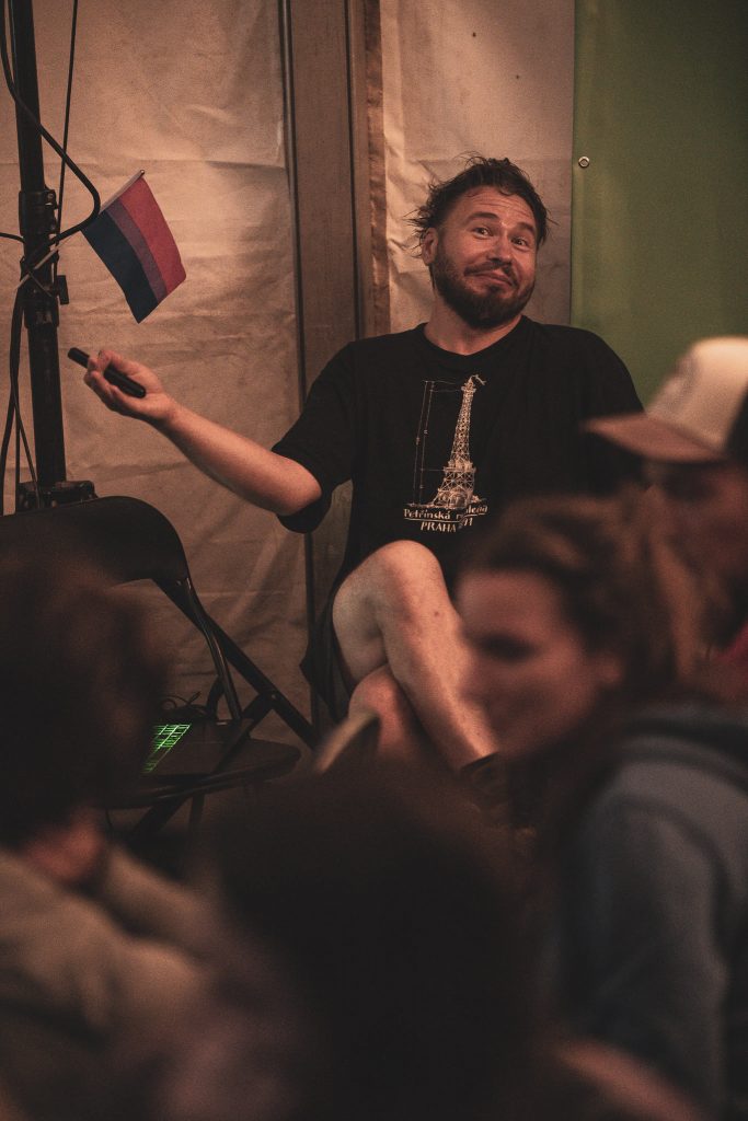 Po takomto koncerte človek musel predýchať. Mohlo by sa zdať, že po takomto koncerte už v zálohe nie je pripravené vôbec nič a predsa: druhý festivalový deň po polnoci vrcholil koncertom kapely Fiktivní Šílenství v zložení: Eva Turnová, Dušan Vozáry, Jitka Charvátová, Jan Vozáry. Českú basgitaristku, výtvarníčku, poetku, výraznú osobnosť nezávislej scény Evu Turnovú vítal festival aj na minulom ročníku, tentoraz však zostavu dali dokopy, aby si pripomenuli pamiatku a dielo Mejlu Hlavsu, dôležitú postavu českej undergroundovej scény. Tento rok by Mejla oslávil sedemdesiatku a je to 20 rokov od jeho predčasného odchodu. Na koncerte predstavili dvanásť skladieb, ktorým pripomenuli nesmrteľný Hlavsov odkaz. Speváčka Jitka Charvátová svojím hlbokým, podmanivým altom dokázala umocniť celkovú zvukovosť skladieb, ktoré boli zámerne štylizované tak, aby vystihovali poetiku Hlavsových piesní. Hoci on sám to nepripúšťal, vždy z nich bola citeľná aj temnota. „Rokenrol je v kríze a väčšina ľudí, ktorá ho robí, to robí len preto, že je to pre nich len tovar,“ znie jeho legendárny výrok. Pripomenúť si jeho tvorbu touto formou bol skvostný dramaturgický ťah.
