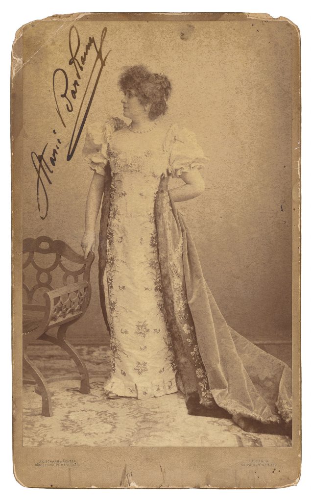 Mária Bárkány bola pratetou Eugena Bárkánya, narodila v roku 1852, pochádzala z Košíc. Po Máriinej smrti venovala jej neter Irma Weile Židovskému múzeu v Prešove osobné listy, fotografie, ale napríklad aj štóly, niektoré z nich aj s výšivkou s dátumami konkrétnych predstavení a iniciálami obdivovateľov, či zopár exponátov civilného oblečenia aj divadelných kostýmov. Jedným z nich je kostým titulnej škótskej kráľovnej zo Schillerovej tragédie Mária Stuartová, ktorý sa nechal zreštaurovať špeciálne pre výstavu a aktuálne je po prvýkrát vystavený pre verejnosť. Na vnútornej strane kabátika veľkolepej róby sa nachádza našitá etiketa s vytkaným názvom parížskeho salónu – ateliéru, kde boli šaty zhotovené. Išlo o salón Mmes de Beauvais na ulici Faubourg St. Honoré. Táto adresa je dodnes veľmi prominentná, okrem Elyzejského paláca je sídlom luxusných módnych domov. Už koncom 19. storočia to bola jedna z najlepších adries chýrnych krajčírstiev, v tom čase už inštitucionalizovaných do Haute Couture.