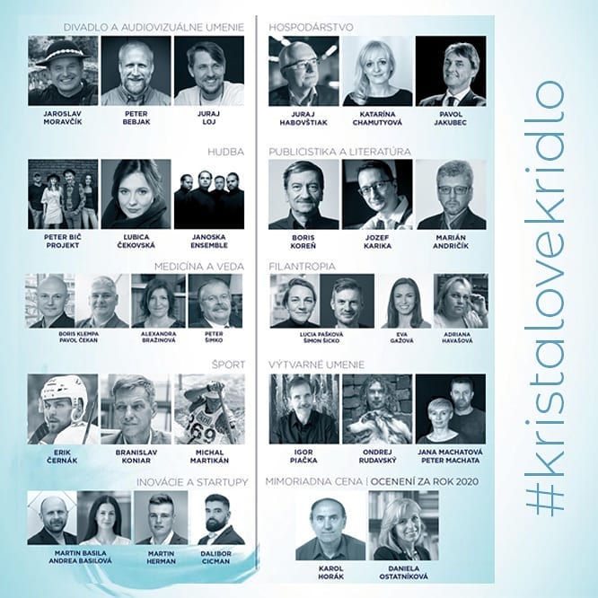 Krištáľové krídlo oceňuje významné osobnosti Slovenska v oblasti vedy, kultúry, filantropie či športu. „Najväčšou hodnotou sú pre nás ľudia, ktorí vďaka svojim schopnostiam a neutíchajúcemu úsiliu prispievajú k tomu, aby sme sa na Slovensku mali lepšie. A to vo všetkých sférach spoločenského života,“ dodala riaditeľka Krištáľového krídla Katarína Srkala.