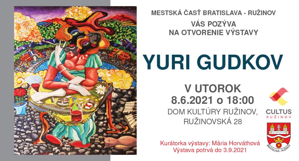 Mestská časť Bratislava-Ružinov a CULTUS Ružinov vás pozývajú na vernisáž obrazov Yuria Gudkova do Ružinovskej galérie, ktorá bude sídliť v priestoroch foyer Domu kultúry Ružinov, Ružinovská 28. Výstavu otvorí kurátorka Mária Horváthová a to v utorok 8. júna 2021 o 18:00 hod. Výstava potrvá do 3. s...