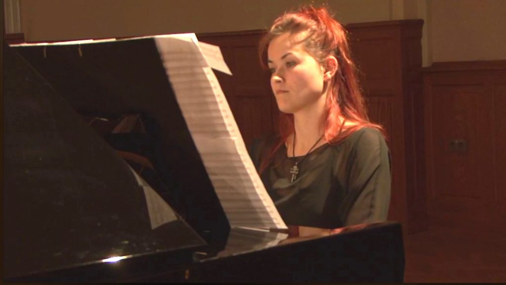 K moderným kompozíciám, ktoré v tento večer klaviristka uvádzala, „ladila“ aj vizuálne (lesklá večerná róba by asi nebola vhodným doplnkom k tomuto repertoáru a hoci sa to zdá ako detail, v tomto prípade je to naozaj nezanedbateľný prvok podstatný pre diváka – a tvoriaci celkový estetický dojem z koncertu).